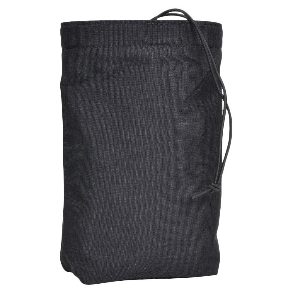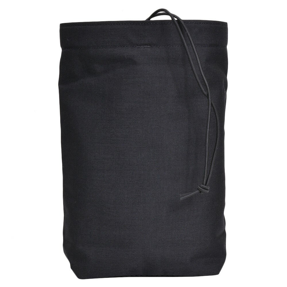 マガジンを入れやすいように、収納口外周の硬い素材で型崩れを抑え、巾着式の開口をショックコードで調整でき、内容物の落下を防止します。