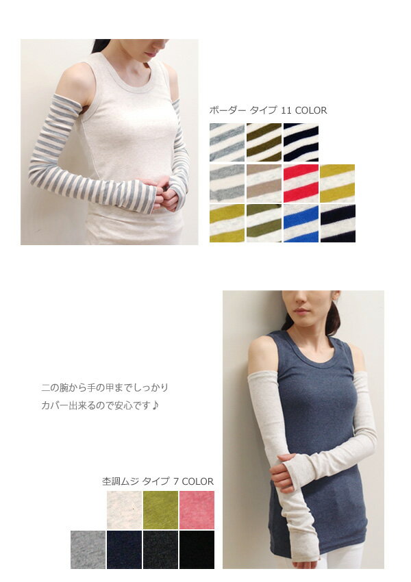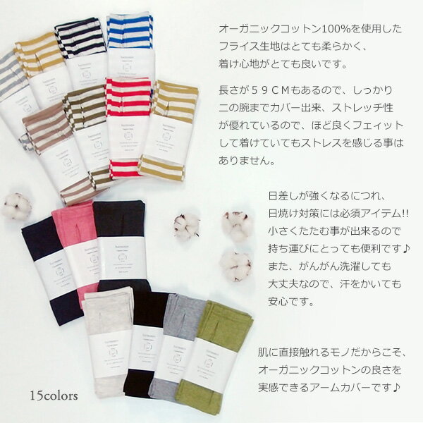 ギフト対応harmonie -OrganicCotton- (アルモニ オーガニックコットン) - フライス・ロング アームカバー - 【オーガニックコットン 100%】 【MADE IN JAPAN】 ■商品サイズ サイズ 仕上げ寸法(cm) 全長 二の腕回り FREE 59cm 18〜26cm ※モデル身長:158cm 伸縮性がとてもあります。