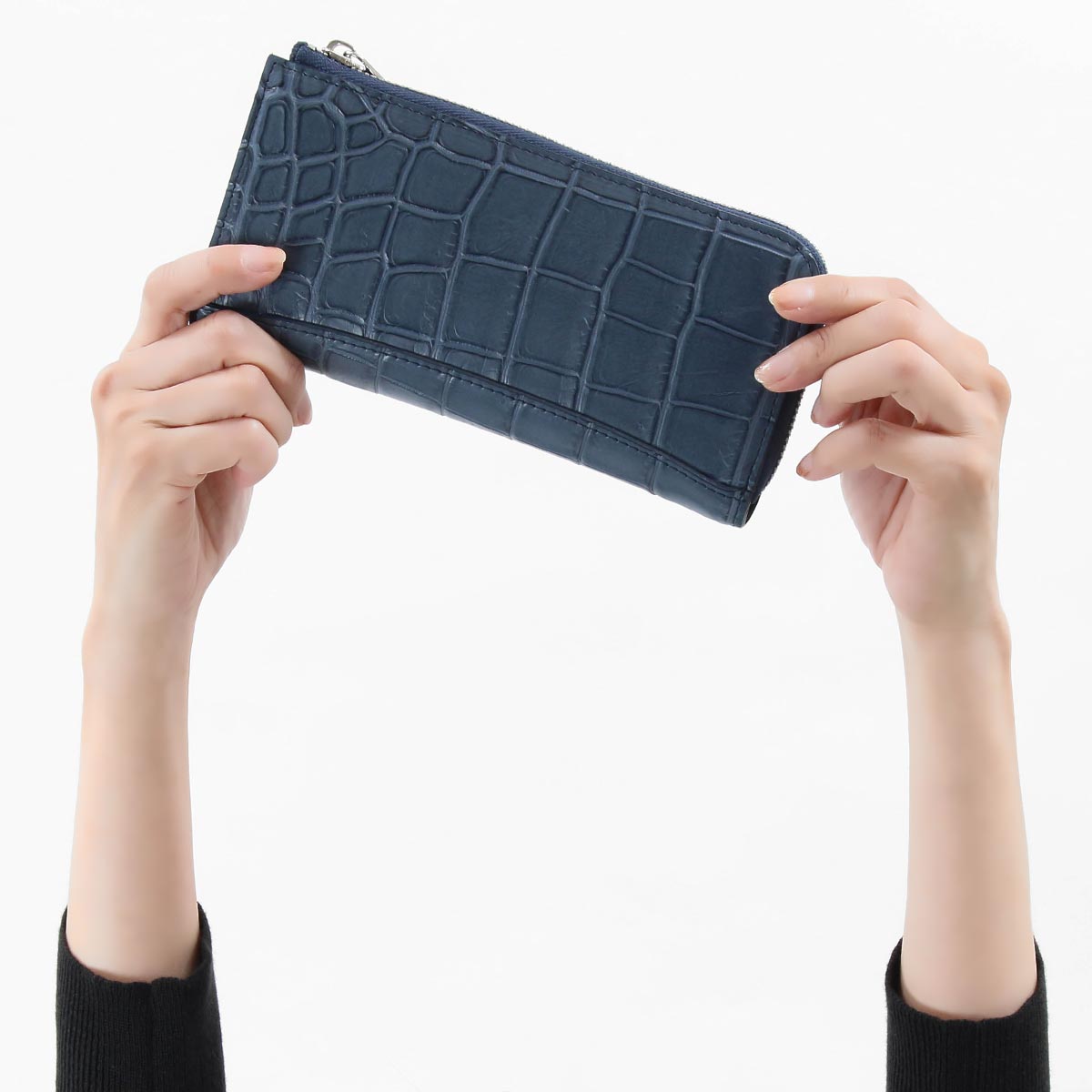 本革 長財布 財布 メンズ レディース クロコ ネイビーブルー CRS004M NVY Leather