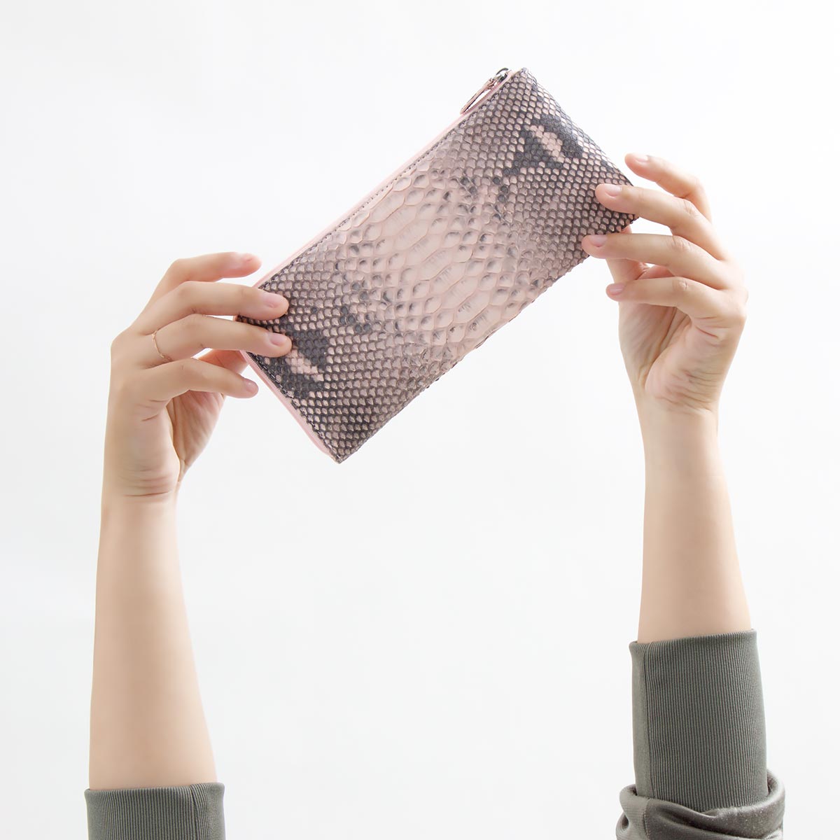 本革 Leather長財布 パイソン/PYTHON ピンク OKU7165 PK レディース最高の素材をあなたに本革パイソンのウォレットが新登場!美しいウロコが特徴的でソフトな肌触りと柔軟性が人気のエキゾチックレザー。