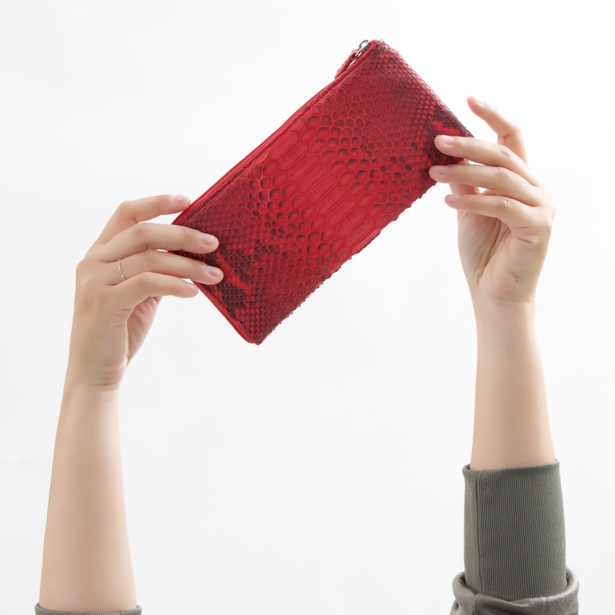 本革 Leather長財布 パイソン/PYTHON レッド OKU7165 RD レディース最高の素材をあなたに本革パイソンのウォレットが新登場!美しいウロコが特徴的でソフトな肌触りと柔軟性が人気のエキゾチックレザー。